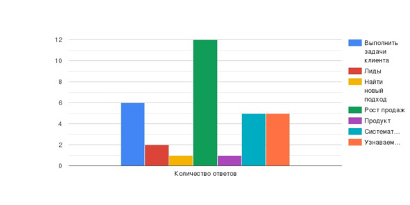6 экспертов просто выполняют задачи по договору с клиентом, какими бы они не были. Такой подход имеет место, особенно если заказчик точно знает, что ему нужно. 12 маркетологов ответили, что их главный приоритет рост продаж. 5 человек работают над узнаваемостью компании, и еще 5 систематизируют работу отдела маркетинга. Иными словами, сегодня есть спрос на формирование «правильно» работающей маркетинговой службы, регламентам, постановке стратегии и создания инфраструктуры для ее реализации.