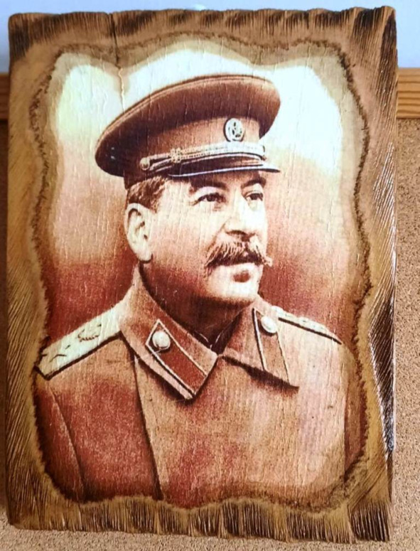 После музея пошел в сувенирный магазин. Слегка разочаровался. Кич вроде магнитиков и тарелочек. Карикатурных бутылок с вином. Вино, по словам продавцов настоящее, поэтому дорогое. Бюсты вождей пролетариата еще советских времен, по астрономическим ценам. Хотел уже уходить, но вдруг среди завалов ерунды увидел портрет Сталина в военной форме нарисованный на деревянной дощечке. Руки сами потянулись. Взял и уже отпускать не хотел. Мое. И сейчас этот портрет, чем-то смахивающий сразу и на лубок, и на иконку висит в кабинете, и Сталин смотрит иногда на меня, но чаще на мою дочь трудоголика, COVIDом загнанного работать на удаленку и поэтому оккупировавшей мой кабинет.