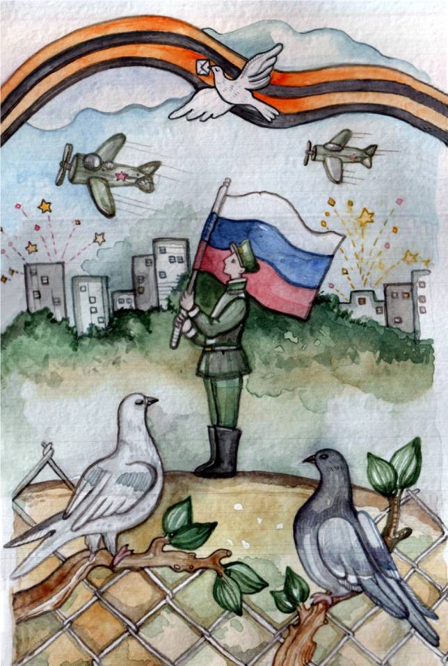 Молодые голуби заворковали мол, как красиво! И люди оделись хорошо, и флаги у них яркие, но для чего или для кого это? Нарастающий гул одним взмахом крыла остановила старая голубка. Её с рождения белые пёрышки со временем посерели, взгляд затуманился, и теперь она была абсолютно слепа. Не понимая ажиотажа среди молодых, голубка Варя, как ласково звал её хозяин, задала вопрос: