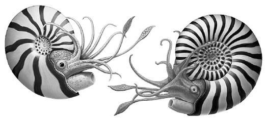 С момента своего появления и на протяжении многих последующих геологических периодов аммоноиды были главным достижением эволюции головоногих. Пусть они и не дожили до того, чтобы украсить своим присутствием моря наших дней, однако их раковины одни из самых распространенных и самых красивых окаменелостей в мире. Так как они закручены спиралями, у некоторых народов их называли змеиными камнями, а название «аммоноиды» они получили в честь бога Амона, чья голова увенчана бараньими рогами{19}.