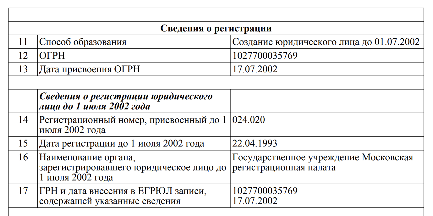 Рис. 10. Фрагмент выписки из ЕГРЮЛ, содержащий сведения о дате регистрации юридического лица до 1 июля 2002 года, на примере ПАО «Лукойл»