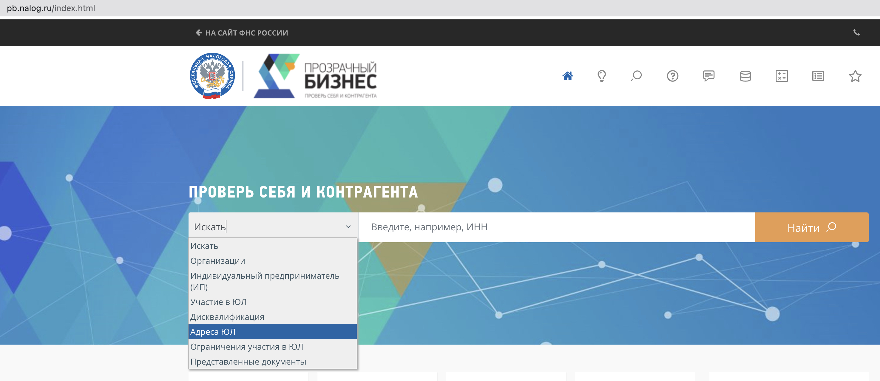 Рис. 7. Интерфейс раздела «Адреса ЮЛ» сервиса проверки контрагентов «Прозрачный бизнес»