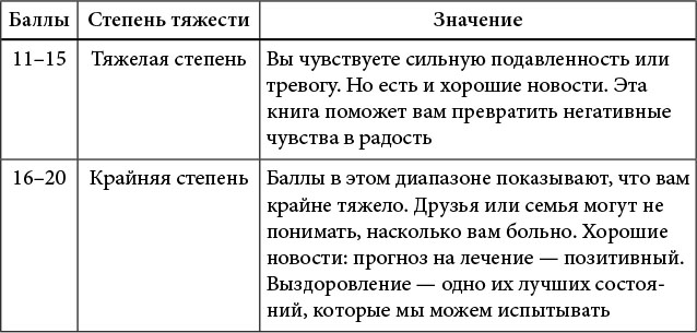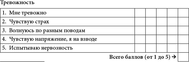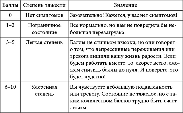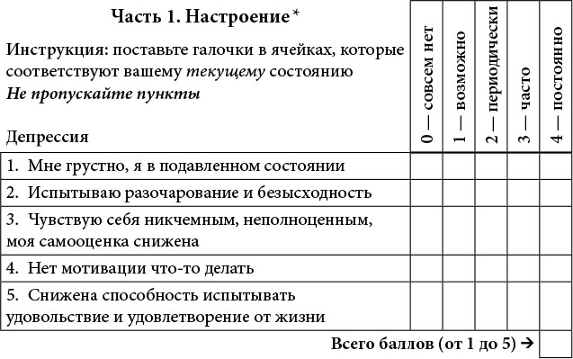 Эта книга помогает менять самочувствие, поэтому сначала давайте определим, как вы чувствуете себя сейчас. Отметьте подходящие пункты, затем подсчитайте и запишите общее количество баллов для каждого состояния депрессивного и тревожного в соответствующих ячейках. Это же задание я попрошу вас пройти ближе к концу книги. Так, сравнив баллы, вы сможете увидеть, насколько изменилось ваше состояние.