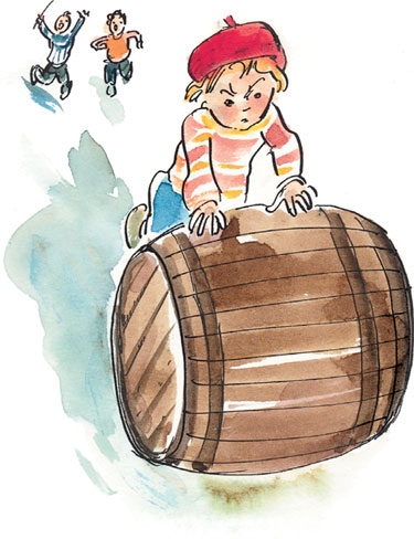 В это время пришли большие мальчишки и отобрали у Мортена его бочку. Мортен заорал так, что какой-то человек остановился и пристыдил обидчиков: