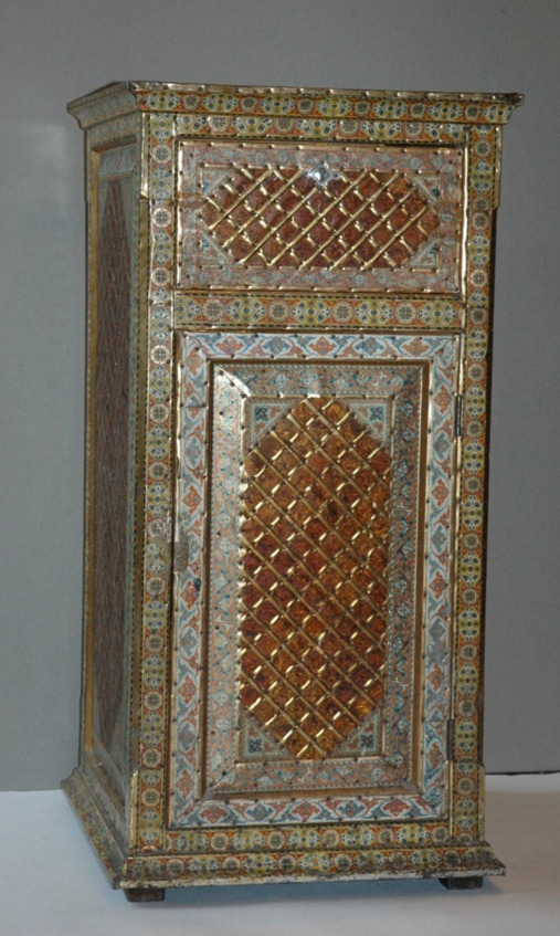 Ил. 10. Тумба. До 1902 года, Невьянск. Дерево, жесть, олово, хромолитография, «мороз» по жести (один из экспонатов выставки, ныне в ОНИ ГРМ).