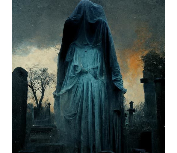 Я приподнялся на носки, чтобы разглядеть получше тьму и под моими ногами хрустнула сухая трава. Плач резко оборвался. Я замер. Через несколько секунд, не касаясь земли из-за могильной стелы вылетела фигура в белом платье и пронеслась вдоль ряда захоронений, растворившись во мраке.