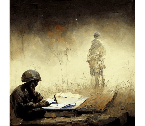Вражеский солдат идет в одиночку через все поле, разрываемое снарядами, в него пули прилетают, осколки, но он продолжает двигаться на меня как ни в чем не бывало, сжимая в руке окровавленный нож, и скалится гнилыми зубами Я весь рожок в него расстреливаю, а он как зомби щерится и прет, щерится и прет Я кричу братьям: «Чего это с ним?!» Озираюсь по сторонам и понимаю, что в траншее я совсем один. Через секунду враг наваливается на меня сверху и пытается заколоть