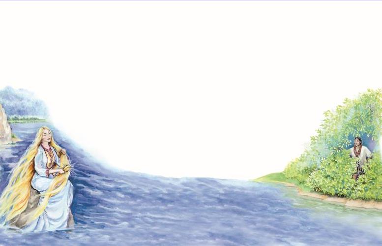 Она испугалась, золотой гребень упал на камень, а сама она спрыгнула в воду и исчезла.