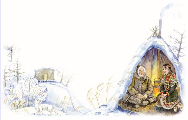 В одном племени жили муж да жена. Муж на охоту ходил, дичь приносил, а жена за оленями смотрела, шила одежду и покровы к чуму. Много детей у них родилось, да все умирали.