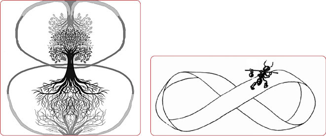 Рис. 38. Полное отзеркаливание (слева), лента Мёбиуса (справа)