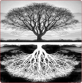 Корни дерева отзеркаливаются вниз в капиллярные системы Земли. У Земли тоже есть своя капиллярная почвенная система. И в соединении с питательной системой растений они становятся единой трубопроводной структурой.