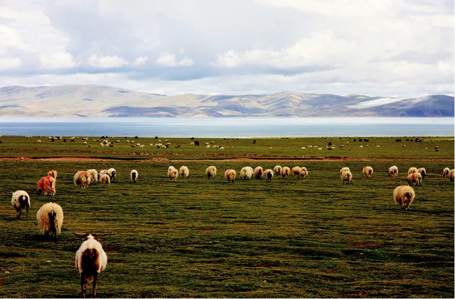 Стадо коз около озера Намцо