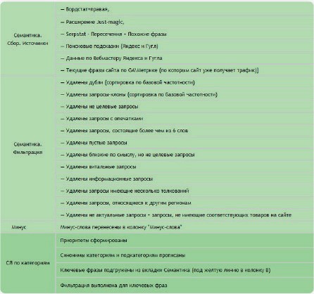 Собираем семантику по чек-листу из 48 пунктов он описывает все процессы, которые нужно выполнить для формирования семантики