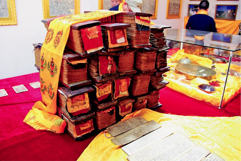 Древние книги в монастыре религии бон в уезде Цзиньчуань, префектура Аба, провинция Сычуань