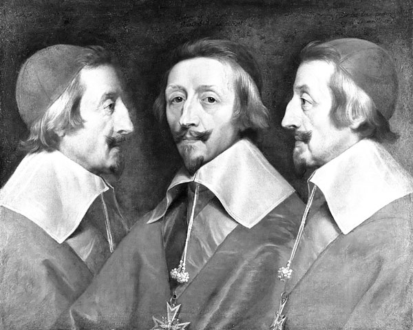 Художник Филипп де Шампань. Арман Жан дю Плесси, герцог де Ришелье, происходил из старинного французского рода, известного с XIII века. Имя Ришелье они стали носить, когда получили поместье с этим названием по одному из брачных договоров. Арман был четвертым из пяти детей в своей семье. Его продвижение по карьерной лестнице началось, когда он получил сан епископа при короле Генрихе IV, а при Людовике XIII он стал кардиналом Франции. Кардинал Ришелье занимал посты государственных секретарей по военным и иностранным делам с 1616 по 1617 год и был главой правительства (главным министром короля) с 1624 года до своей смерти.