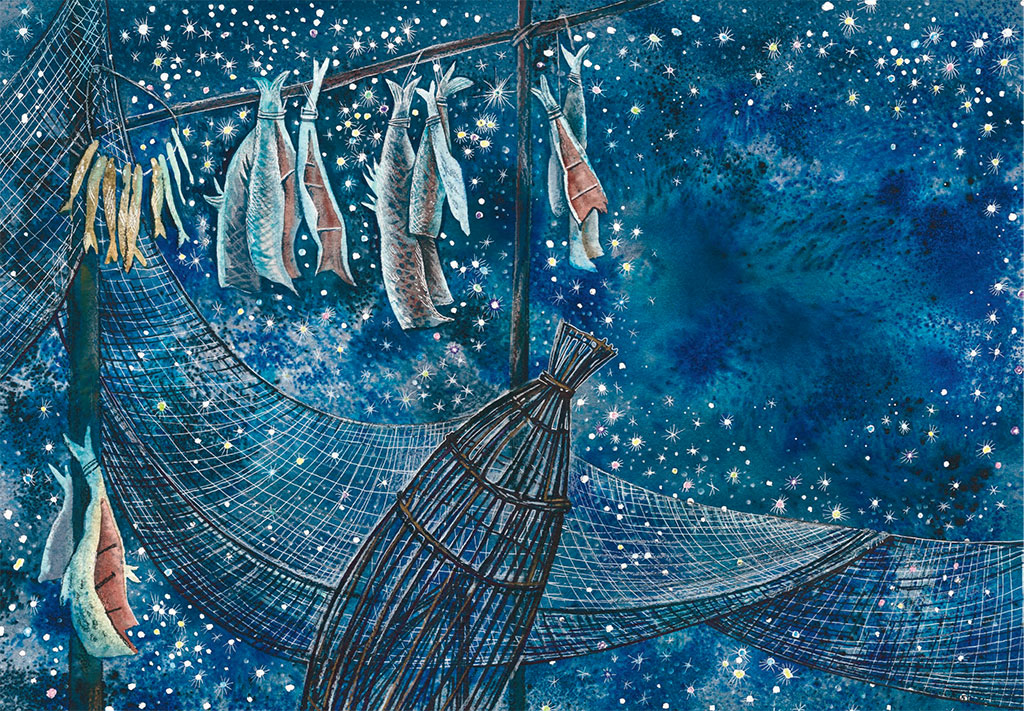 Джелбеген взвыл от боли и ухватился за ветку черёмухи. Немного потягавшись с ним, Луна глубоко вдохнула и с усилием подняла великана на небо вместе с деревом.