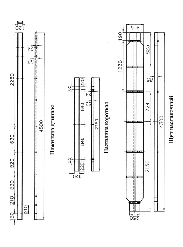 Прогоны входили в верхнее строение и служили для перекрытия пролетов в мостах, паромах и пристанях. Между собой прогоны соединялись зажимными болтами, к понтонам, рамным ригелям, береговым лежням и связным щитам прогоны крепились стрингерными болтами. Связные щиты служили поперечной связью и предохраняли прогоны от скручивания. Настилочные щиты образовывали проезжую часть. Пажилины предназначались для закрепления настила и являлись колесоотбоями.
