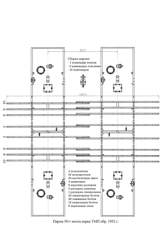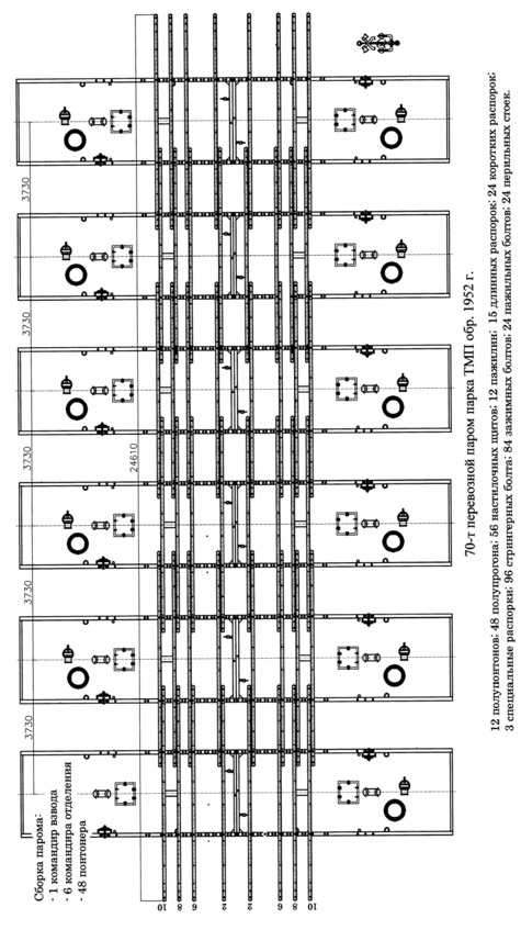 состав на сборку парома 48 понтонеров и 6 ком. отд.;