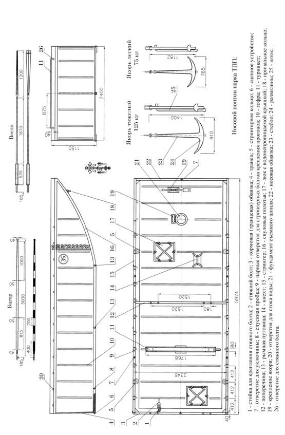 В комплект понтона входили три прижимные балки с болтами предназначавшиеся для крепления на понтоне прогонов и щитов.