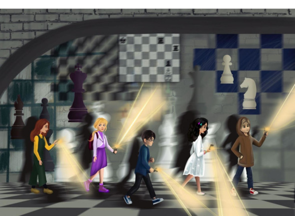 When the labyrinth was illuminated by the phones, the team saw walls covered with symbols, which, upon a closer look, turned out to be pictures of chess pieces, frayed in some places, intact here and there. Whole game notations or chess problems could be seen elsewhere.