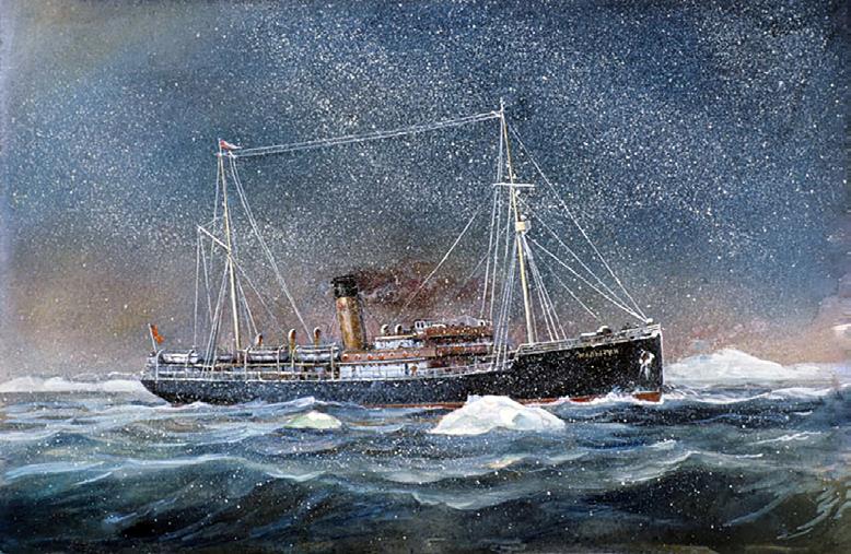 Илл. 11. Ледокольный пароход «Малыгин». Художник Е. В. Войшвилло. Фото из открытых источников