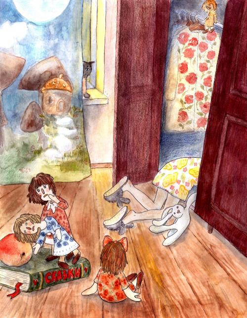 Ты всё верно поняла. В этом мире их ремонтирует невидимый Кукольник. Игрушки только видят волшебную иголку, которая быстро их штопает, и после починки уже не добавляется новых дырочек, ничего не отрывается, потому что теперь куклы сами себе хозяева, с ними уже не играют, и они живут своей жизнью. Но игрушки очень скучают по своим маленьким друзьям и иногда приходят к ним во сне.