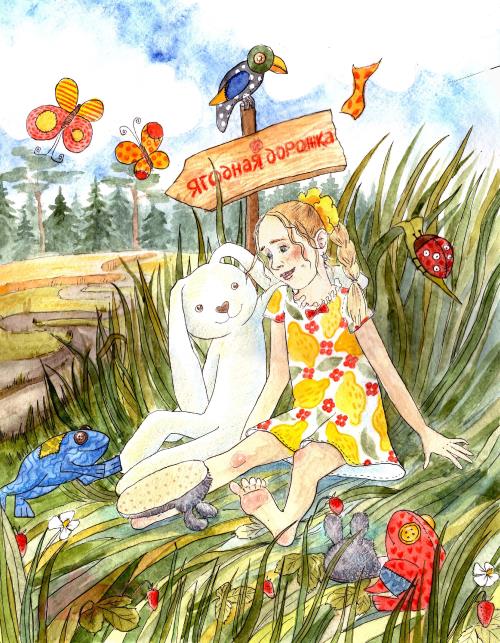 И заяц с Васёной отправились в путь по Ягодной Дорожке к лесу.