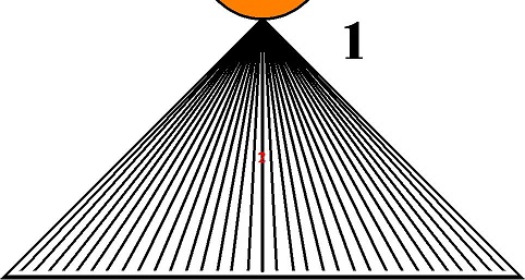 Верхний Начальный, Коего тут изображен лишь южный полюс сферического проявления. Каждый из этих Лучей состоит из нескольких родов МногоМеРностей, похожие на Галактики, Солнечные системы, или атомы, но гораздо многоМеРнейшие.