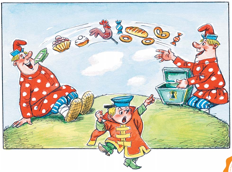 Раскрыли братцы-молодцы свой ларец, а в нём пирожные, мороженое, конфеты Вовка зажмурил глаза, разинул рот и ждёт. Ну, думает, сейчас наемся до отвала. Да только проплыли сладости мимо Вовкиного рта.