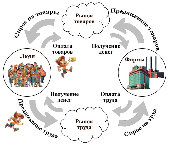 Теперь мы с тобой знаем, как примерно работает рынок. Видим, что и люди, и фирмы одновременно являются и покупателями, и продавцами.