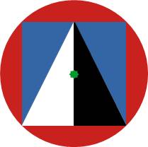 представь себе круг, в круг вписан квадрат, в квадрат вписан треугольник, треугольник разделён на две стороны, а посредине точка: