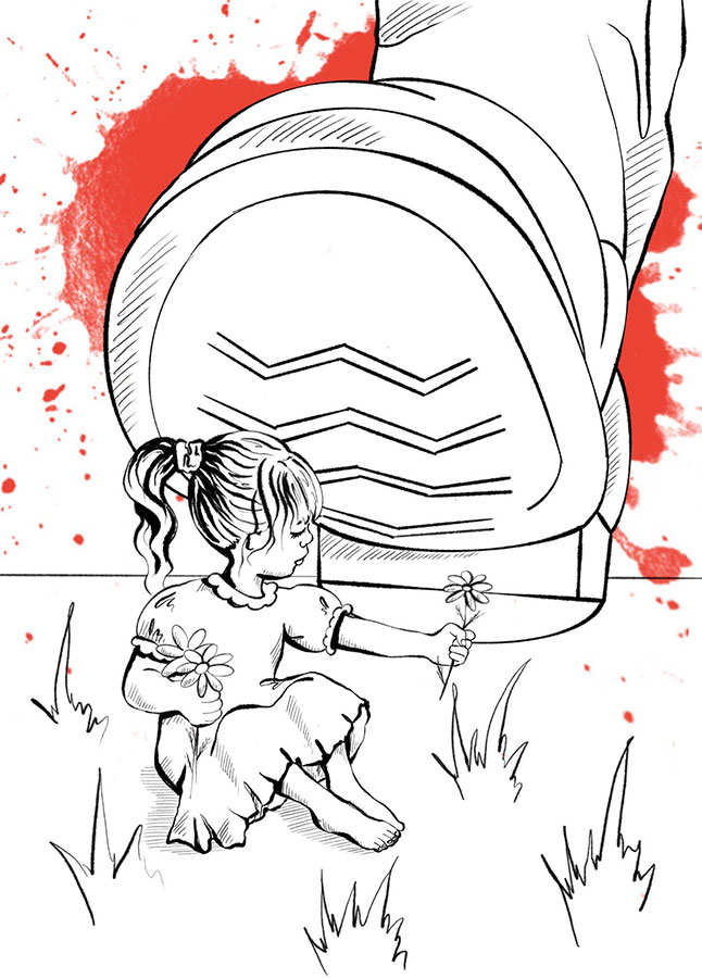 Пока Юлик тихонько сетовал на свою непростую братскую судьбу, дорога вдруг загудела и стала слегка подрагивать. Неожиданный порыв ветра всколыхнул зеленое платьице и поднял в воздух несколько ромашек. Женечка обиженно заплакала, пытаясь удержать свои оставшиеся в кучке сокровища. Мальчик подскочил к сестре, чтобы помочь.