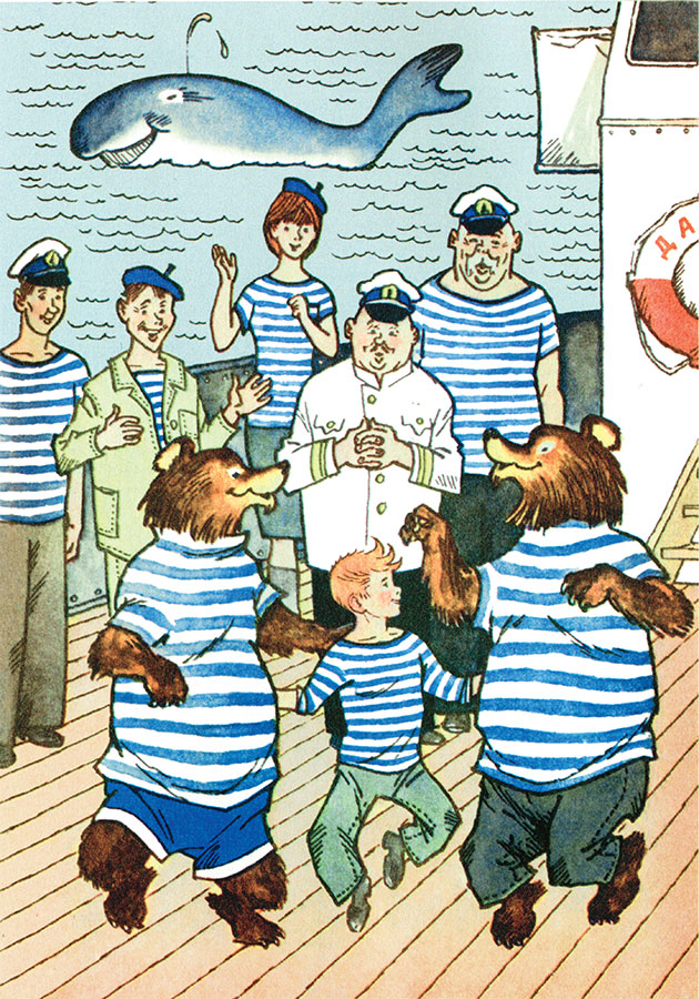 Все приоткрыли рты, будто им, а не медведям предназначался сахар. Но Солнышкин всунул в медвежьи пасти по куску рафинада и вместе со зверями стал приплясывать на палубе. Даже Челкашкин сказал: