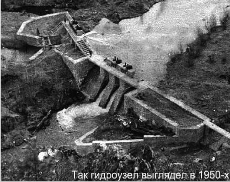 От этой плотины по берегу реки построили канал, дно которого было выложено бочковой клепкой и стянуто металлическими шпильками. В низинках, этот канал переходил в деревянную трубу, диаметром метра полтора.