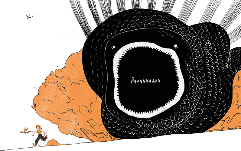 То, что вынырнуло из песка, больше всего напоминало гигантского чёрного червя. Хитиновые пластины, которыми было покрыто его тело, блестели на солнце и непрерывно шевелились. Червь посмотрел прямо на Санни, и её сердце ушло в пятки. Он разинул гигантскую круглую пасть, полную острых зубов, и Ики в ужасе рванулся вверх, торопливо маша крыльями.