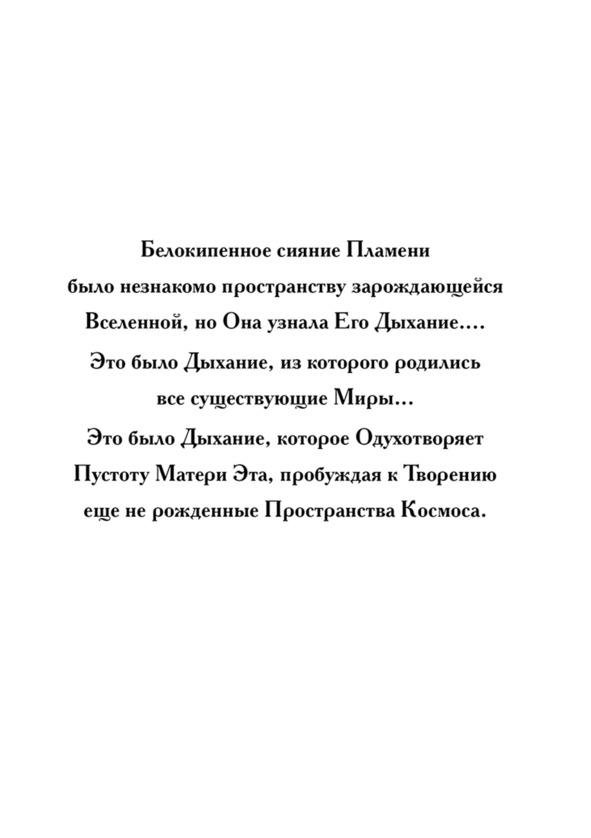 Это есть ЕДИНАЯ ЖИЗНЬ, вечная, невидимая и, в то же время, вездесущая, без начала и конца, но периодичная в своих регулярных проявлениях, между которыми царствует мрак тайны Не-Бытия; несознательное, вместе с тем Абсолютное Сознание, непостижимая, тем не менее, единая самосущая Реальность; истинно, «Хаос для чувств, Космос для разума». На эзотерическом языке ее единое абсолютное свойство, вечно непрекращающееся Движение, называется «Великим Дыханием», и является непрестанным движением Вселенной в смысле беспредельного, вечносущего Пространства».