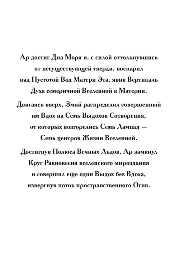 «Первый [круг без точки], как это известно изучающему оккультную науку, представляет Космос в Вечности перед новым пробуждением еще дремлющей Энергии, эманации Вселенной в последующих системах.