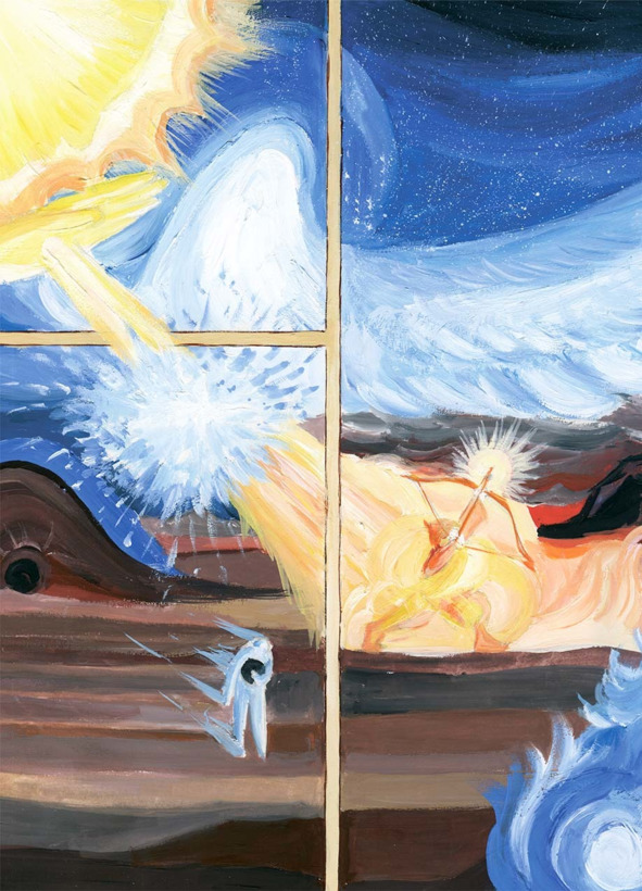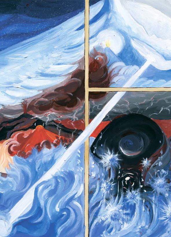 Закручивает в вихри, сталкивает, соединяет, обращая разрозненные частички в АйгиМу первичную Материю Жизни.