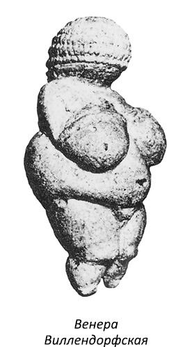 До нас дошло много резных и лепных изображений богини плодородия. Их часто называют статуэтками Венеры, и одна из самых известных Венера Виллендорфская. В числе других примеров Венера Лоссельская, Венера Сирейская и Венера Леспюгская.[6] Всех их объединяет то, что женские черты этой фигуры заметно преувеличены. У них тяжелые обвислые груди, большие ягодицы, часто набухший живот, словно они беременны и подчеркнутые гениталии. В остальном у фигурок неизменно отсутствуют всякие признаки идентичности. Лицо лишено черт, а руки и ноги, если вообще присутствуют, едва намечены. Причина в том, что скульптора интересовал исключительно аспект плодовитости. Женщина вынашивала и выкармливала детей. Богиня была ее представительницей как Великая кормилица и утешительница, мать-природа или мать-земля.