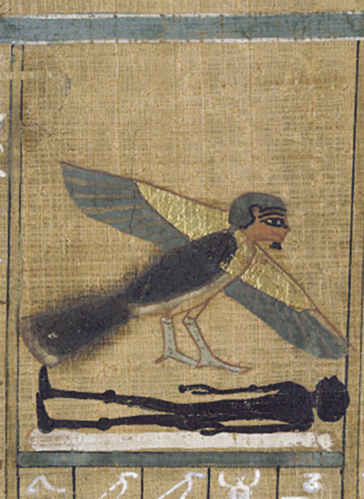 Душа Ба парит над мертвым телом. Ок. 1550 до н. э. ок. 1077 до н. э. Фрагмент из «Книги мертвых» Техенены, Новое царство. Лувр, Париж