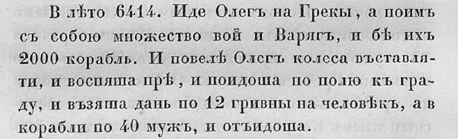 Чуть было не пропустил фразу «взяша дань по 12 гривны на человека» Это абсолютная фейковая вершина летописного творчества! Или всё совсем наоборот? Выходит, что палочки серебра (гривны, но не обручи на шею) имели хождение для оптовых торговых расчётов не только в Новгороде и Киеве, но также и в Восточной Римской империи, коль та империя ими расплатилась с языческими «супостатами» в объёме 156 тонн? Если одна и та же денежная единица для оптовых расчётов имеет хождение и эмитируется на нескольких территориях, то, значит, все эти территории составляют единое государство, в нашем случае единую славянскую Империю. В таком случае Царьград это исконно русский город. Не правда ли?