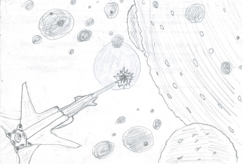 Образовавшаяся черная дыра на месте пульсирующего нейтронного заряда в мгновения поглотила планетоид и, имея очень маленький период «жизни», тот час исчезла сама. Образовавшееся «крошево» в виде сотен тысяч камней разной величины обрушилось в сторону «Экскалибура». Но включившиеся в момент детонации нейтронного снаряда основные ускорители корабля унесли звездный крейсер в пространство, бывшее некогда самым центром планетоида. Таким образом он избежал большинства столкновений, отделавшись легкой «барабанной дробью» по бортам.