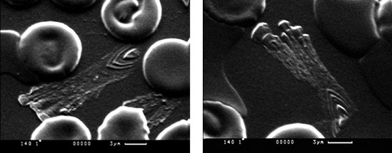 Микрофотографии 15, 16. Резонаторы на возбужденных молекулах гидроксила. Они выявляются в материи плазмы крови с помощью картины интерференции. Резонаторы могут состоять из одной или нескольких однотипных молекул, собранных посредством «природной технологии наносборки»