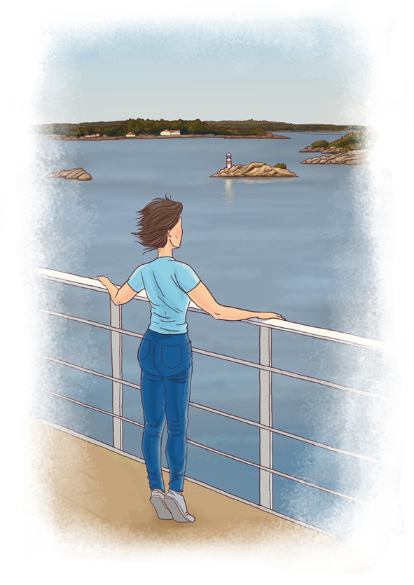 На борту было так же пусто, я вышла на палубу, облокотилась о поручни, посмотрела на пристань, и паром начал медленно отчаливать. На море было совсем не жарко. Дул свежий ветерок, которого в Питере в тот день не было, кричали чайки, солнце садилось в воду, мимо плыли берега, поросшие кудрявым лесом. На душе у меня вдруг стало удивительно хорошо! Всё во мне пело и летело вверх. Я уезжала из Питера навсегда, на встречу с новой жизнью, новыми друзьями. Рядом не будет никого, кто станет полоскать мне мозги, диктовать, как надо жить.