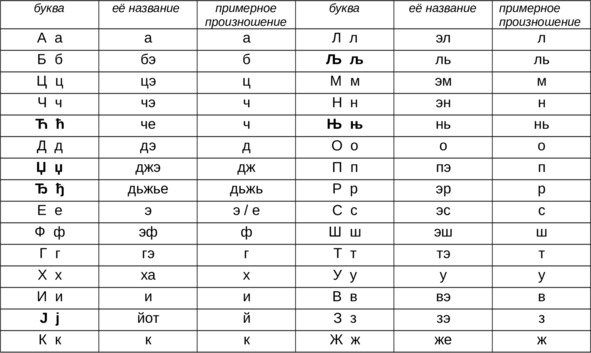 В сербском алфавите 30 букв, каждой из которых соответствует одна фонема. Чтение букв не зависит от их позиции в слове.