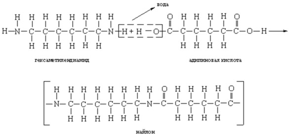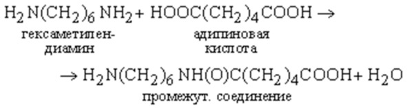 Реакция на этом не заканчивается, поскольку образующиеся промежуточные соединения также бифункциональны и могут реагировать с мономерами или друг с другом. Конечным результатом являются длинные линейные цепи повторяющихся звеньев HN (CH