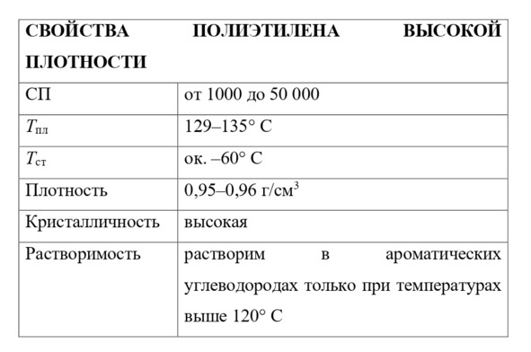 смЛинейные полиэтилены образуют области кристалличности (рис. 2), которые сильно влияют на физические свойства образцов. Этот тип полиэтилена (см. таблицу) обычно называют полиэтиленом высокой плотности; он представляет собой очень твердый, прочный и жесткий термопласт, широко применяемый для литьевого и выдувного формования (см. ниже) емкостей, используемых в домашнем хозяйстве и промышленности. Полиэтилен высокой плотности прочнее полиэтилена низкой плотности.