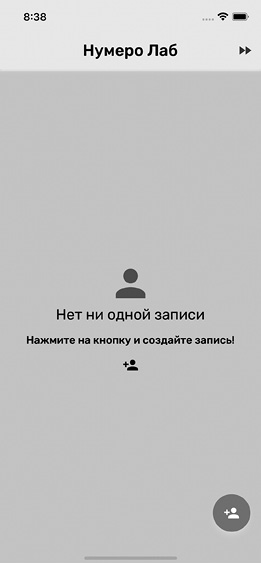При первом запуске «Нумеро Лаб» вы увидите экран, сообщающий, что у вас пока нет ни одной записи, и приглашающий такую запись создать, нажав кнопку справа внизу (рис. 2).