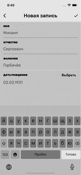 После того как информация введена, нажмите галочку в правом верхнем углу, запись будет сохранена и появится в списке на главном экране (рис. 5).