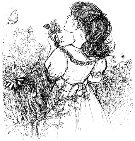Сара стояла в странной роще: ее окружали прекрасные весенние цветы, повсюду летали яркие птицы и бабочки.